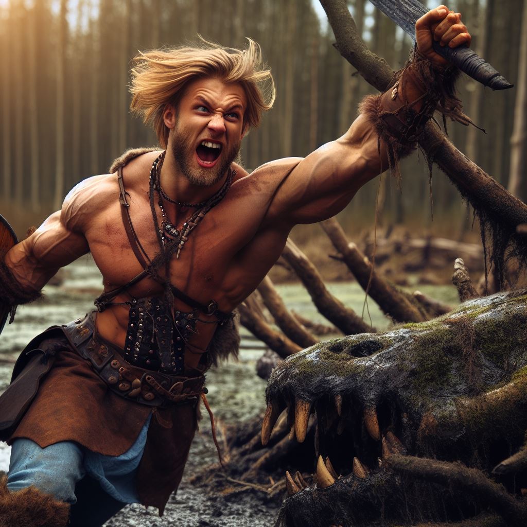 Arnulf, mutig und stolz, hörte den Hilferuf seines Stammes und spürte die Verantwortung, die auf seinen breiten Schultern lastete. Mit einem kantigen Schwert an seiner Seite und dem festen Glauben an die Götter machte er sich auf den Weg zum gefürchteten Moor.